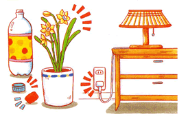 ペットボトルやマヨネーズなどのフタ、クリップなど、飲