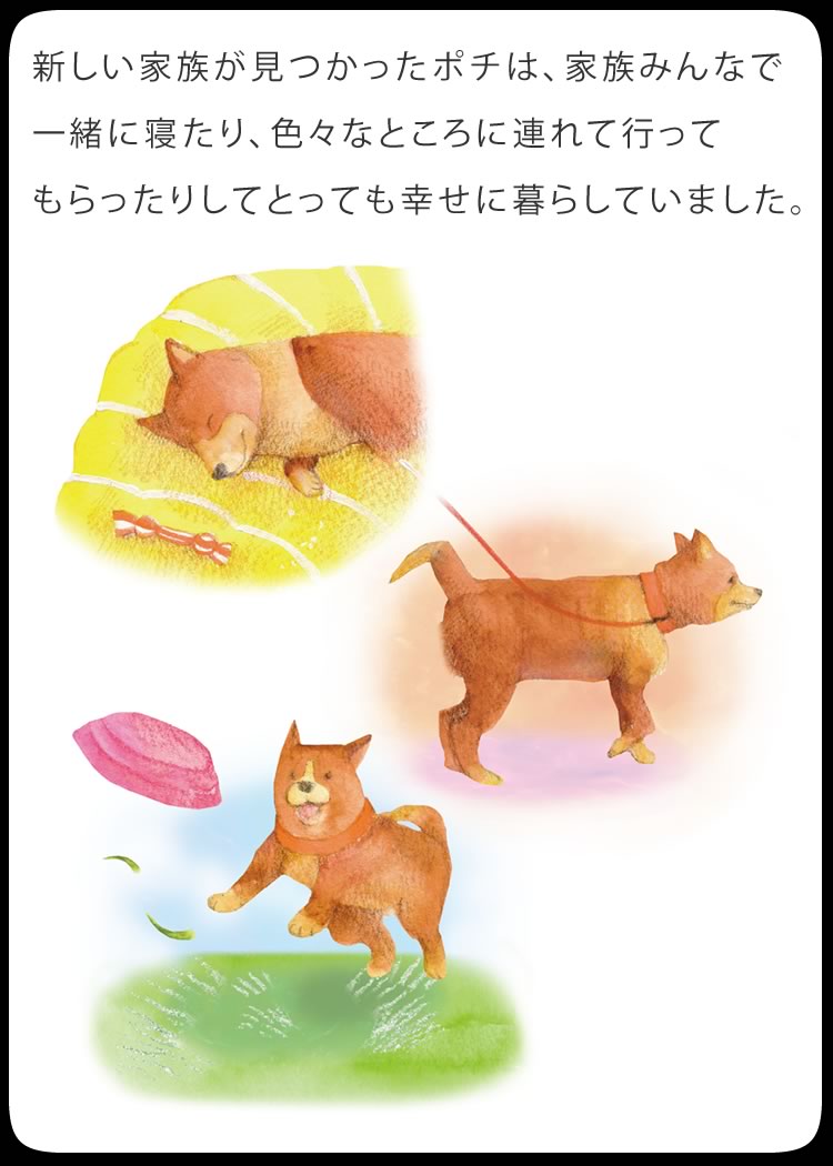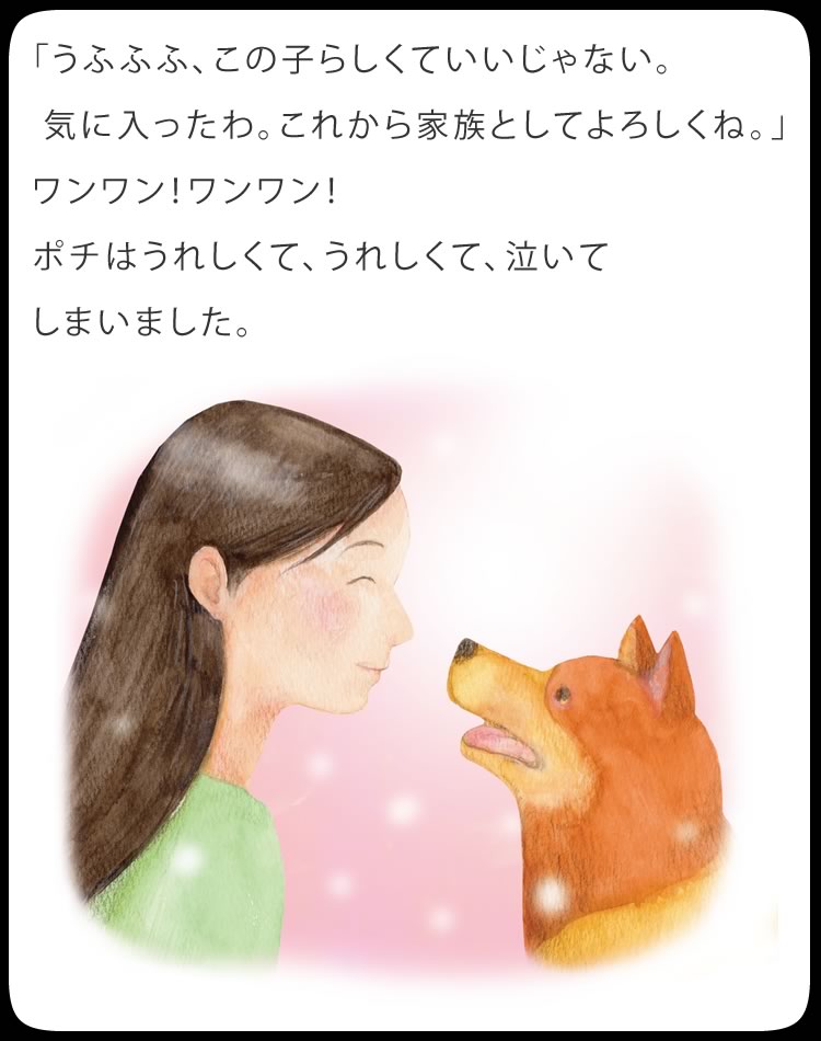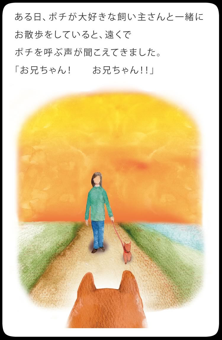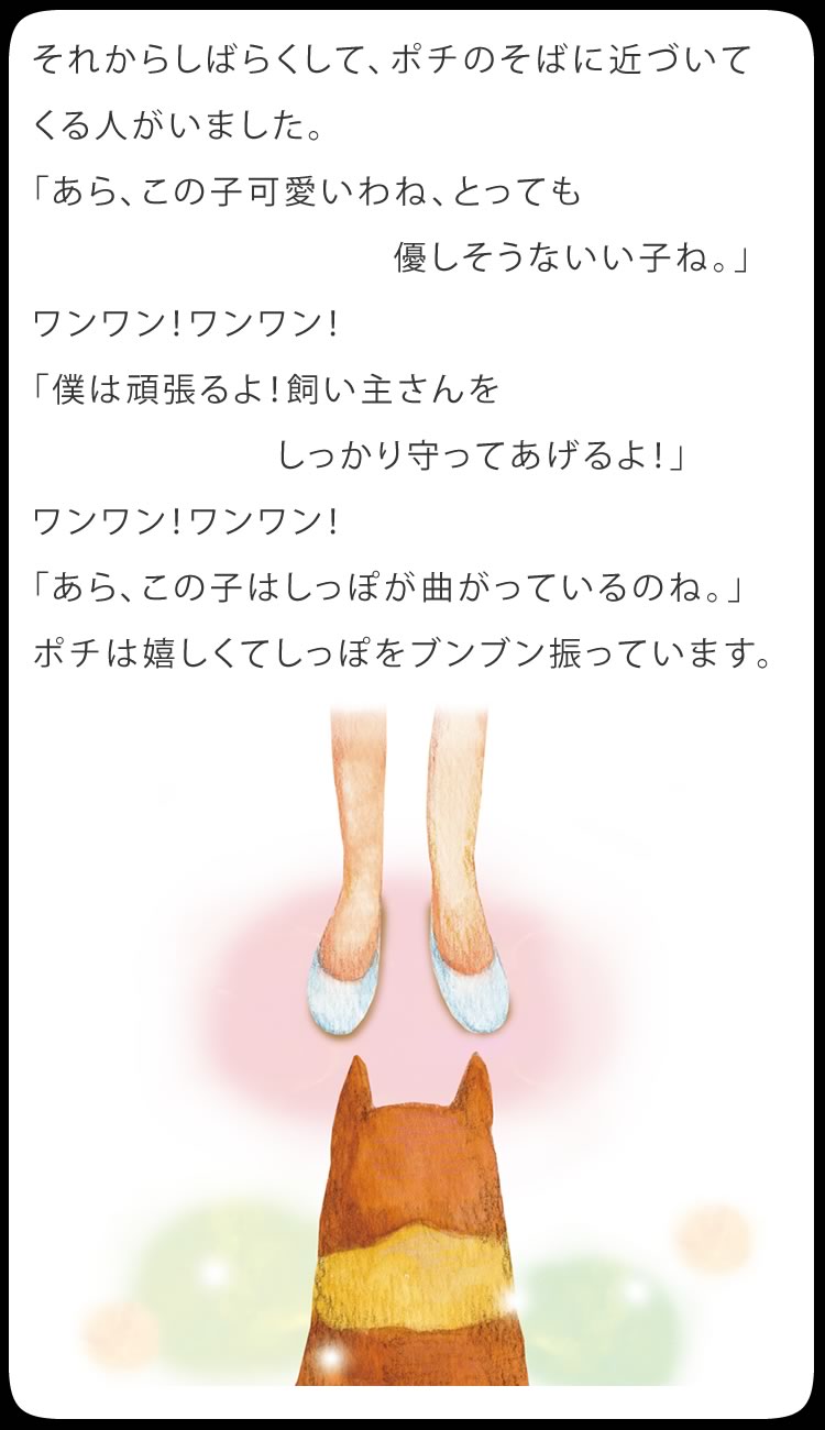 ポチを飼っていた頃に比べると、仔犬のカラーやサイズ、欠点の有無など、ショップが競って付加価値をつける時代になるにつれ、犬を飼う本当の意義が分からないで飼ってしまう人が増えているような気がします。その事は、販売頭数の増加に伴って増えつづけている、保健所に捨てられる犬の数の増加が示しているのかもしれません。欠点のない兄弟が引き取られていくのをみて、仔犬が言っているような気がします。
